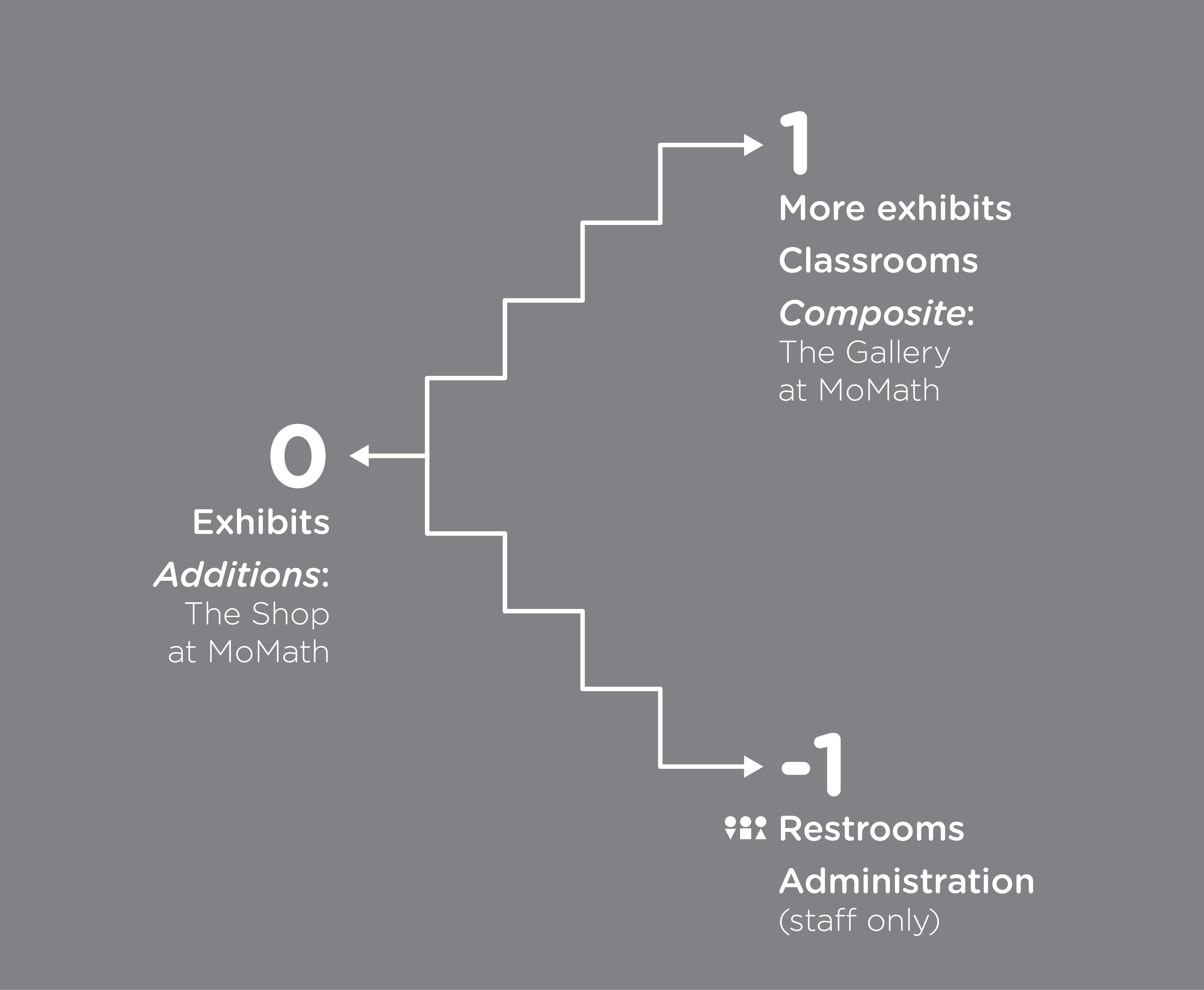 I designed a set of wayfinding signage concepts for MoMath’s new facility at 19th Street and Sixth Avenue. Although the space ultimately opened without using these designs, the project was an engaging exploration of spatial communication, and I’ve included the work here as part of my portfolio.