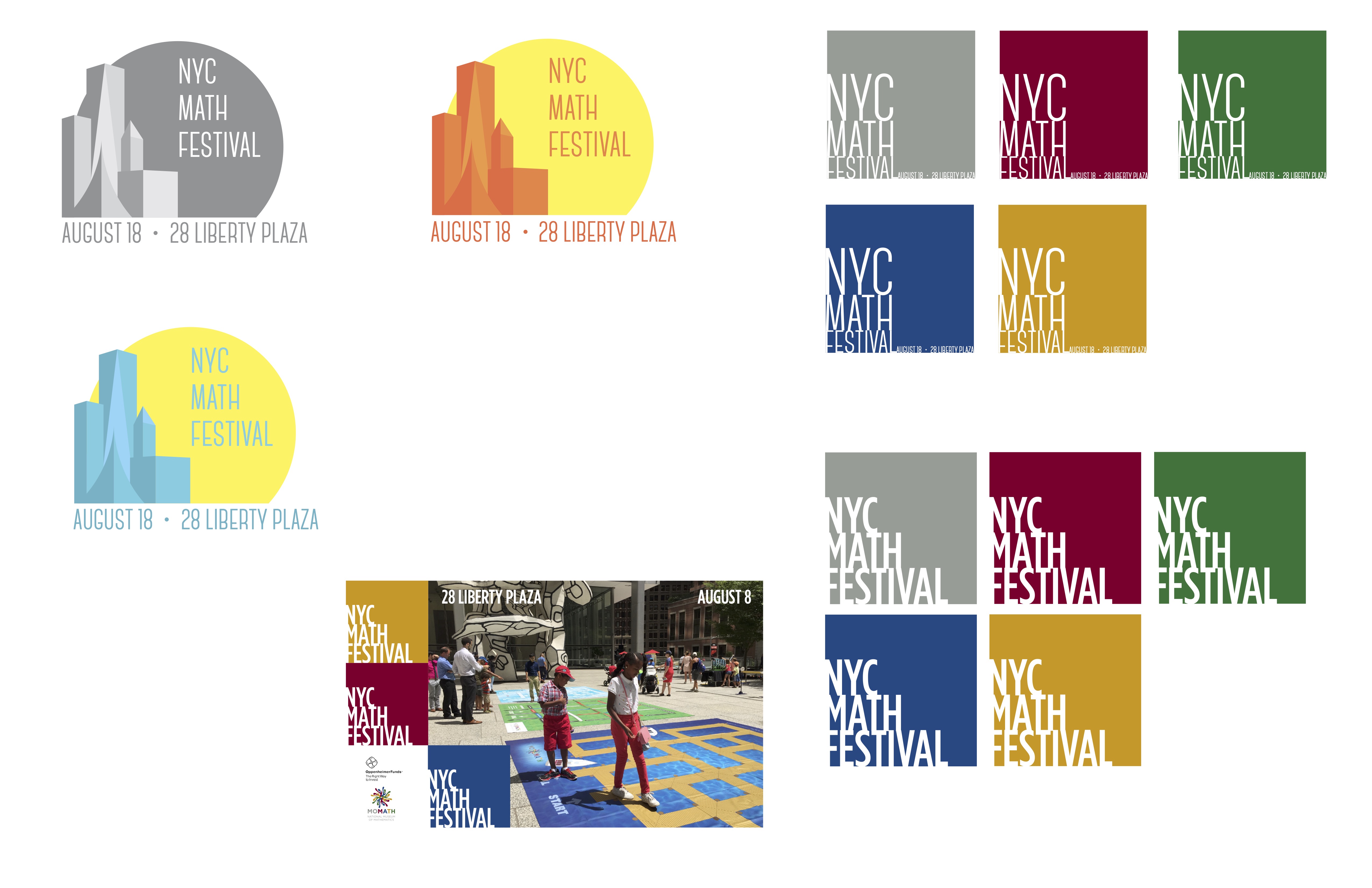 The directive was to come up with a logo for what is hoped to become an annual mathematics festival for New York City. In the end, the Museum decided to go for a more generic look for the promotional material, but I was quite pleased with how these were turning out so I decided to showcase them here.